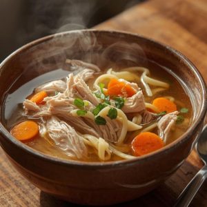 This is a great soup that offers overall wellness with a mix of vegetables, protein, and warm broth. Carrots and celery provide antioxidants, vitamins, and fiber, while chicken breast is great for muscle building and better immunity. The broth is helpful for digestion and hydration, which is a relief duing cold or flu. You can get these health benefits from this soup with the help of this chicken noodle soup recipe.
